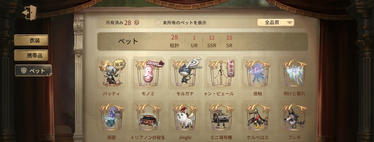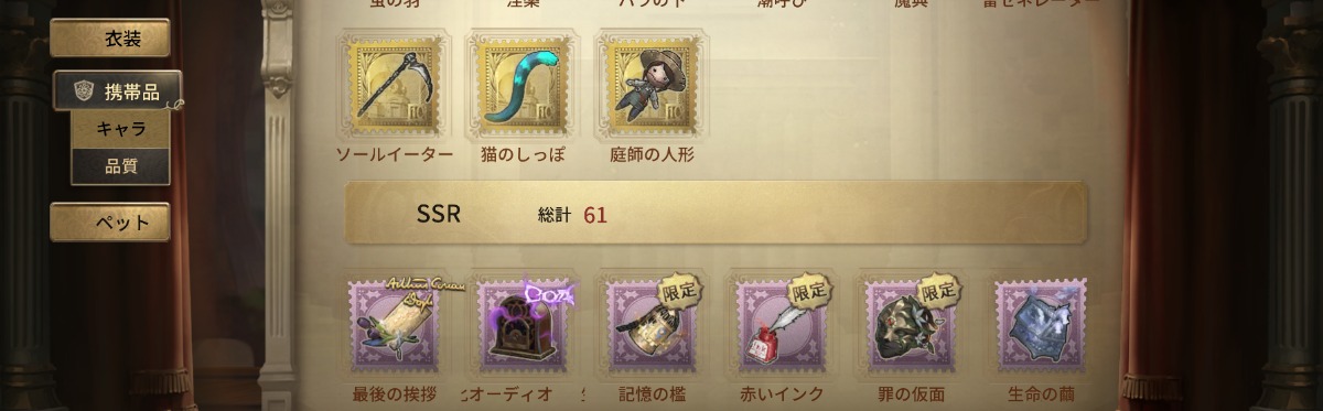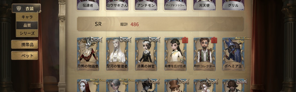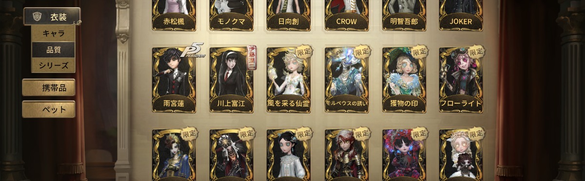 LR衣装4種・JOKER・CROW・心の鍵・フローライト・宇宙の魔女・スピードスケートの種など所持