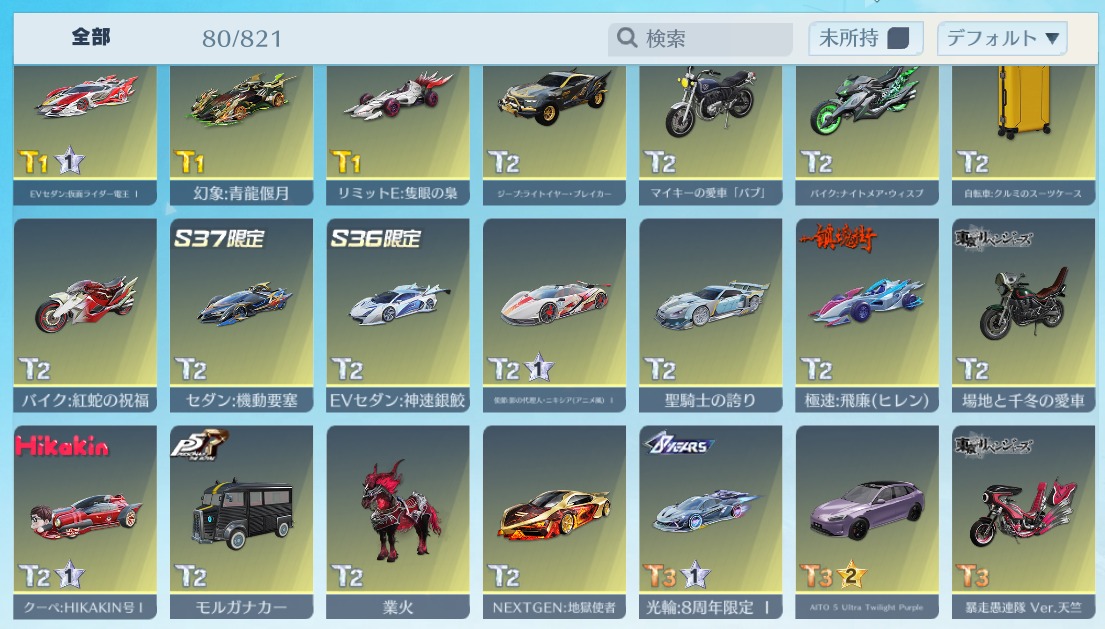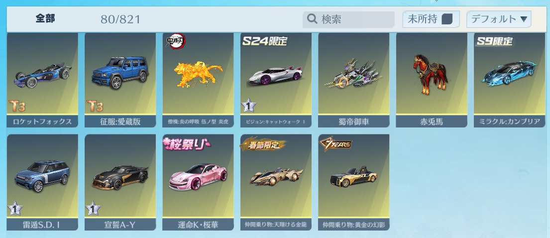 | 車両スキン | 80個 |