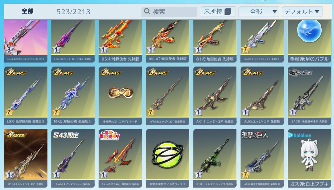 | 銃器スキン | 520個以上 |