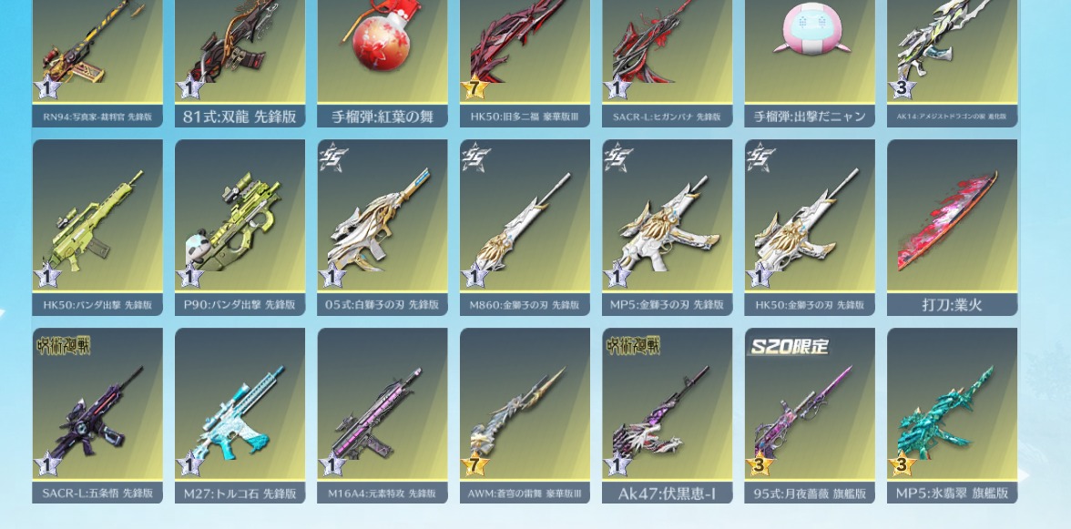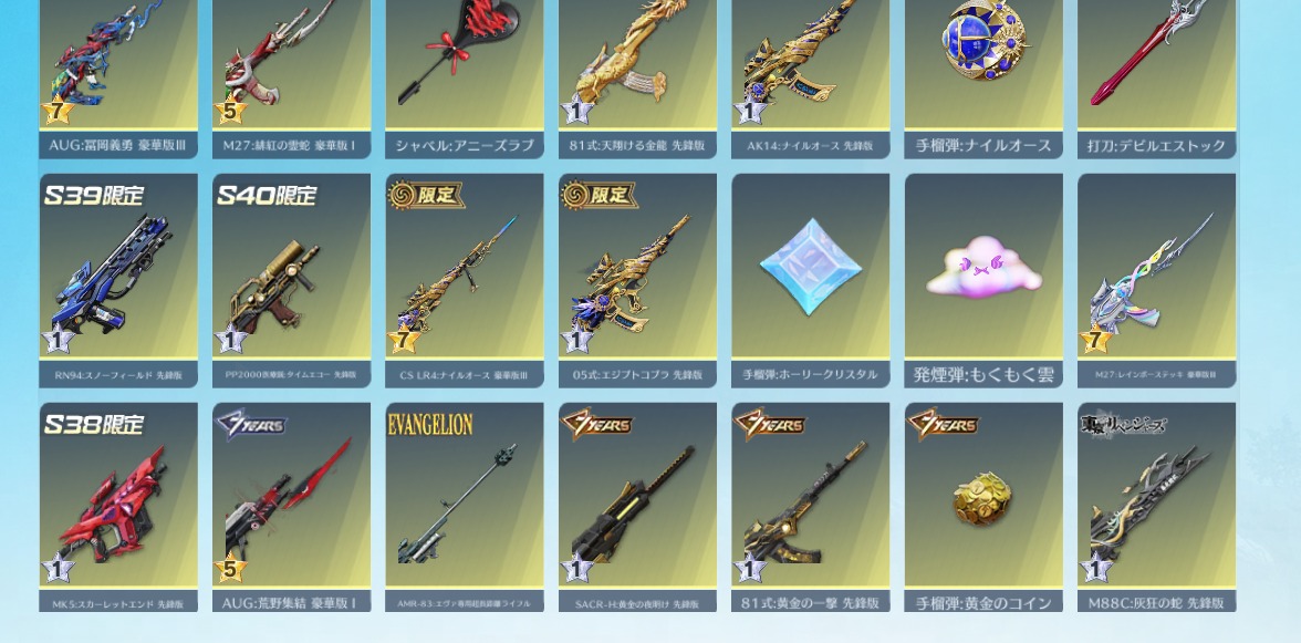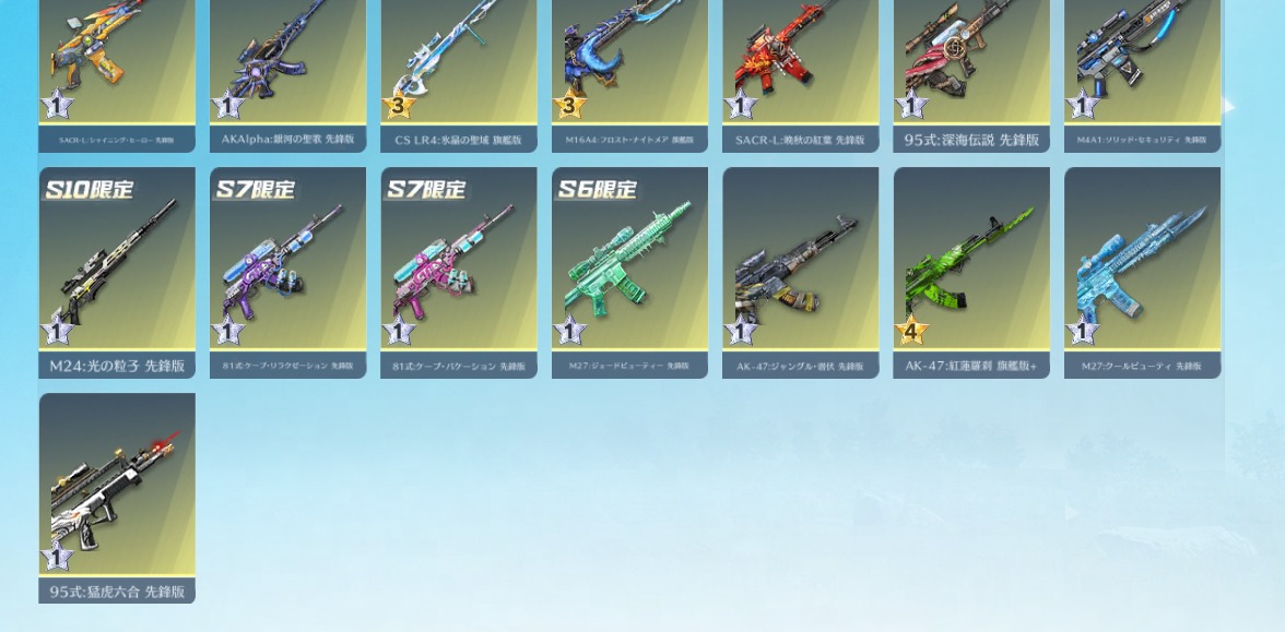 | 銃器スキン | 330個以上 |