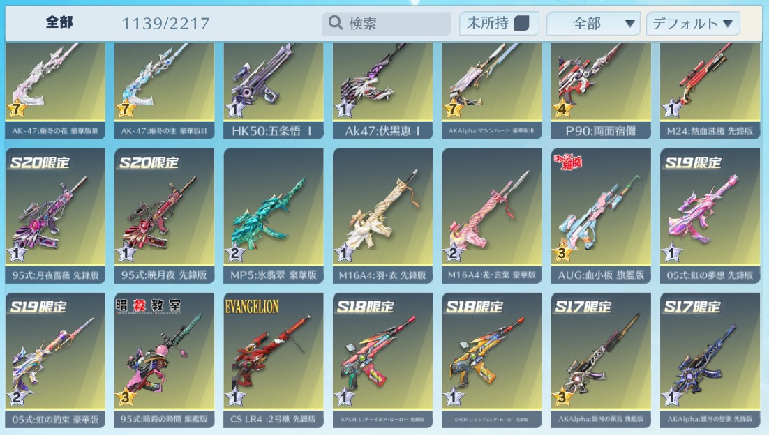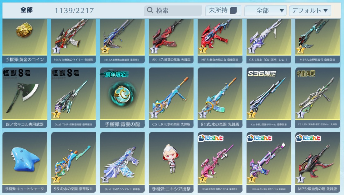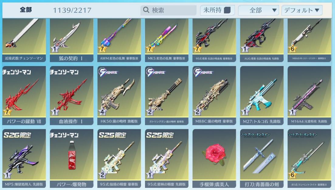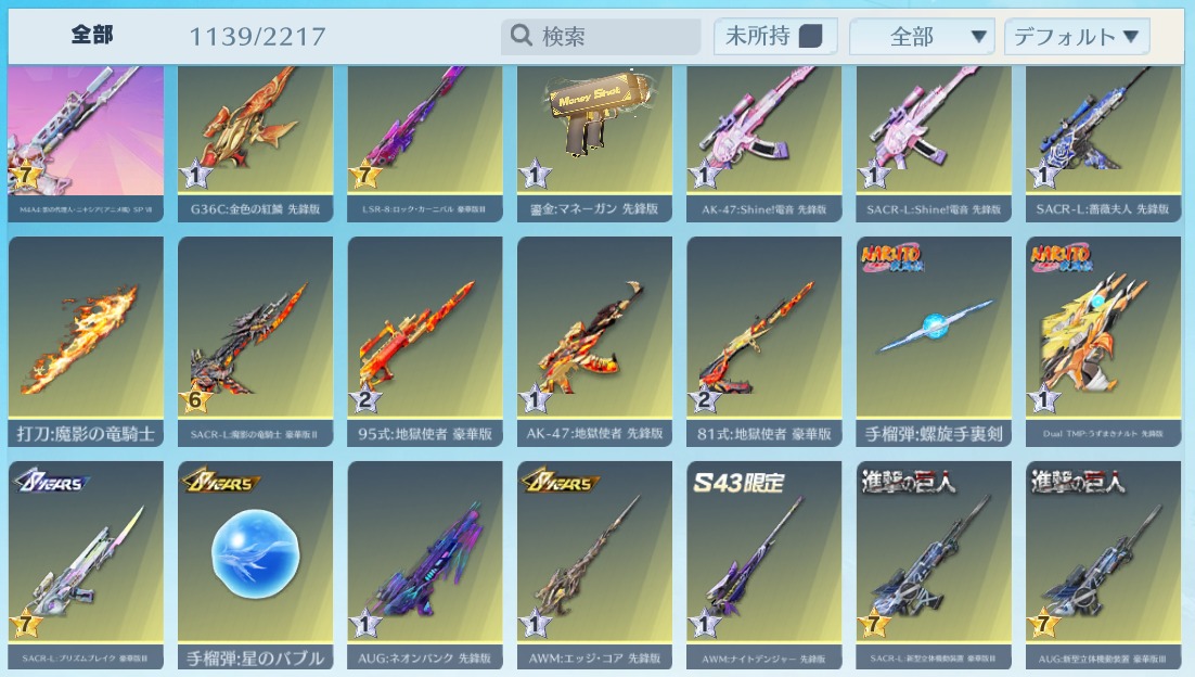| 銃器スキン | 1110個以上 |