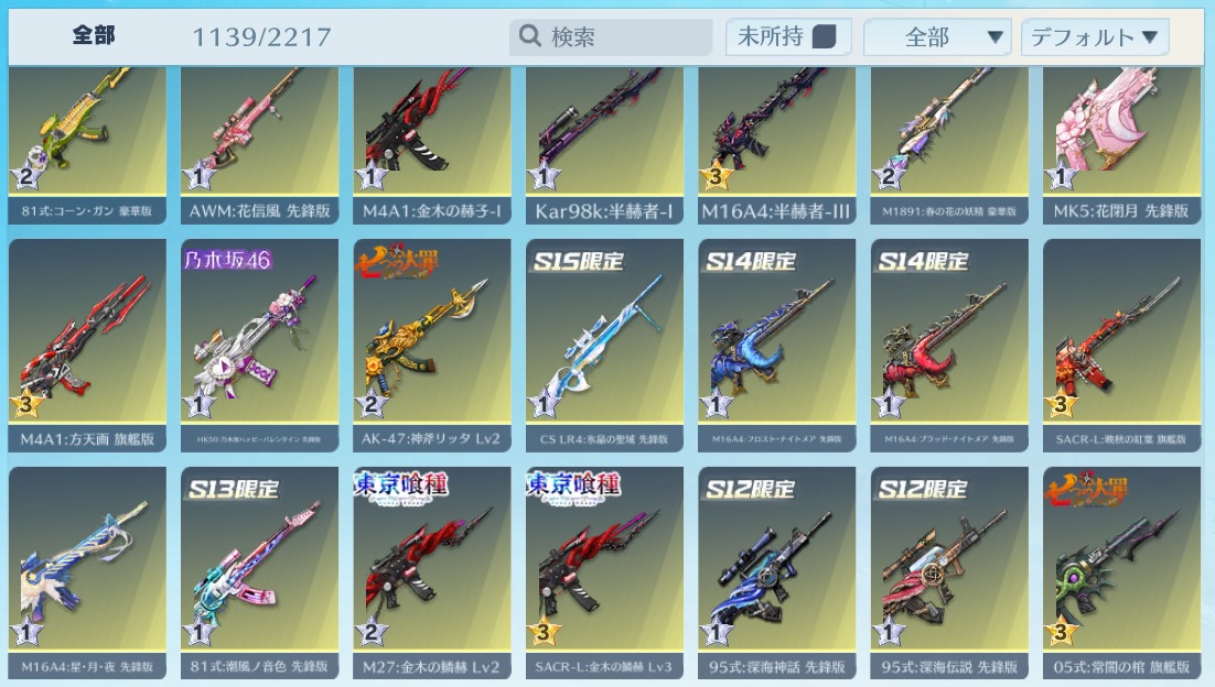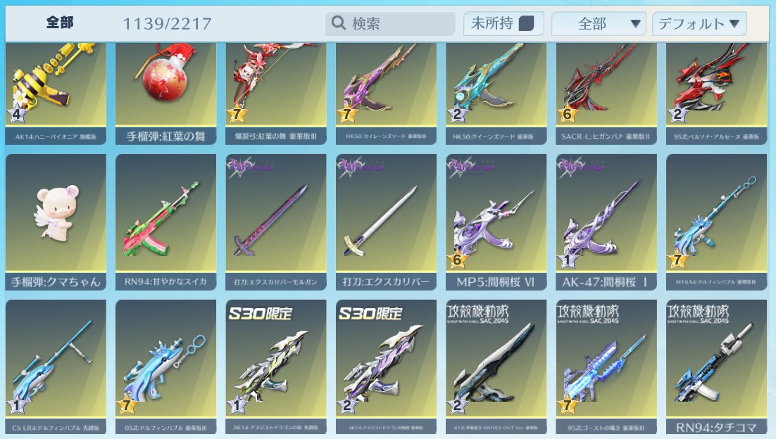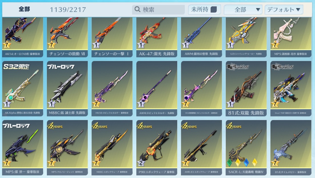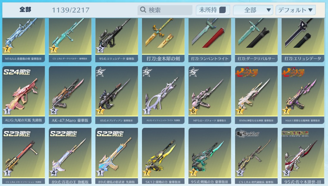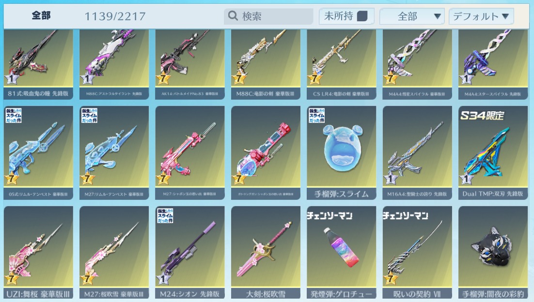 | 銃器スキン | 1110個以上 |