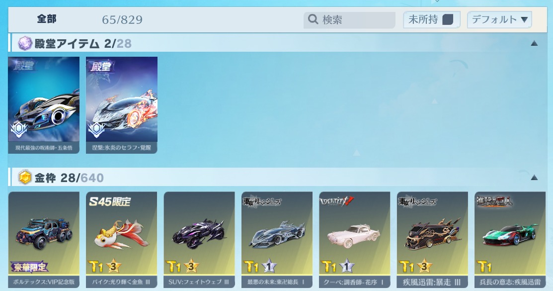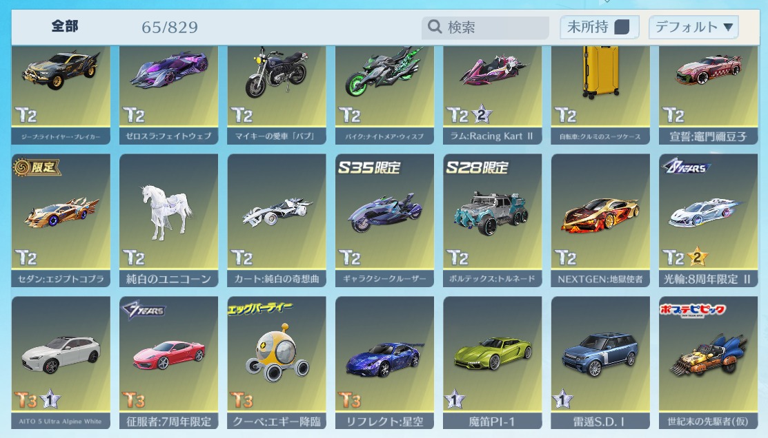 | 車両スキン | 65個 |