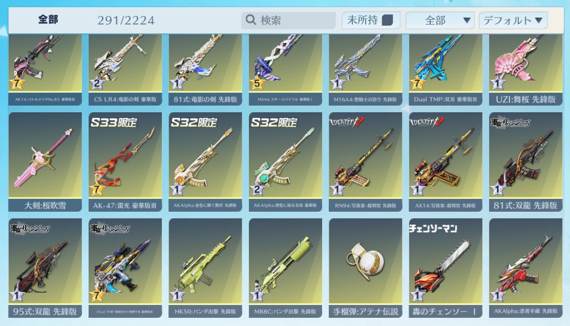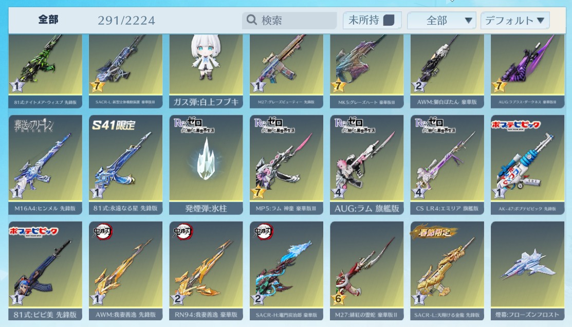 | 銃器スキン | 290個以上 |