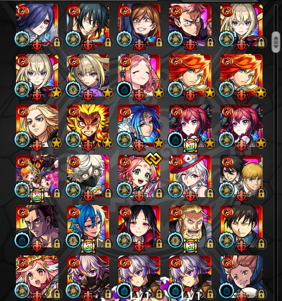 ガチャ限運極9体・黎絶運極2種・轟絶運極43種・オカルン・忍野忍・パンサーなど所持