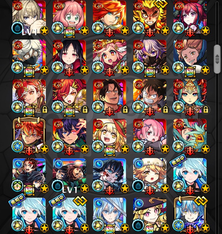 轟絶運極24種・我妻善逸・炭治郎&義勇・ニケ・パンサー・猫猫・ルネサンスなど所持