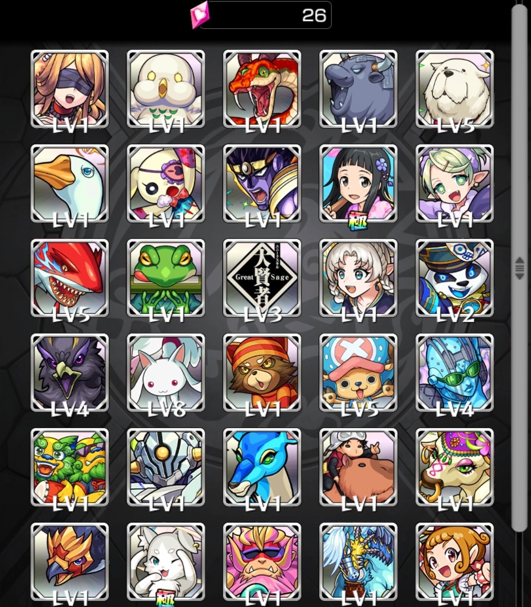 黎絶運極1種・轟絶運極25種・ワルキューレ・遊戯&闇遊戯・アガスティア・ヤバ女など所持