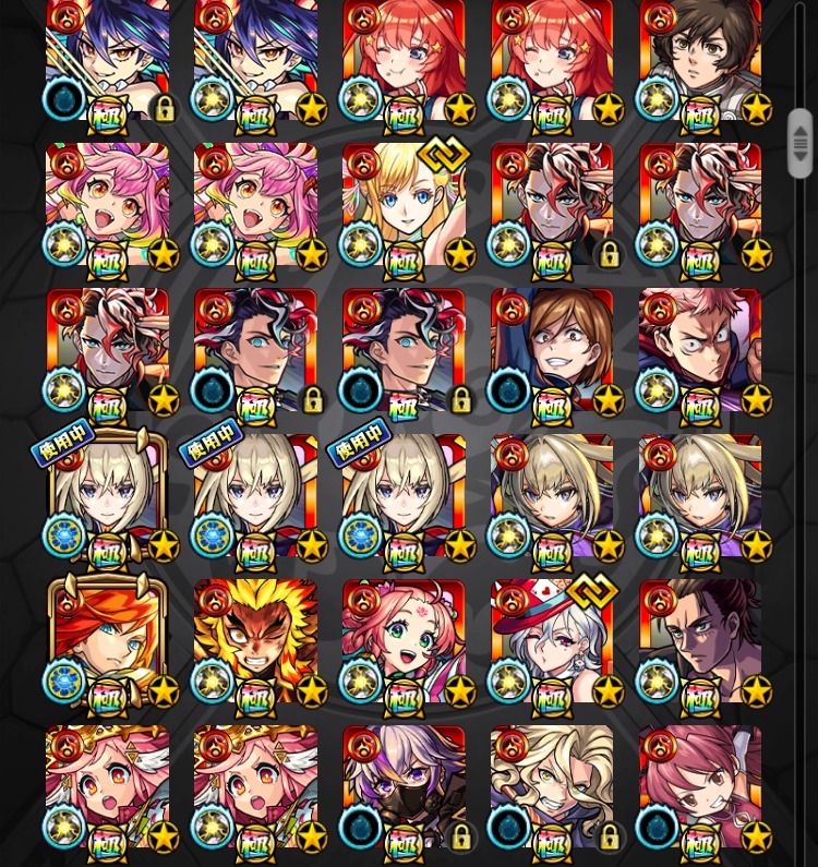 黎絶運極3種・轟絶運極29種・ジャックα・いろは・ニャアン・忍野忍・エリスなど所持