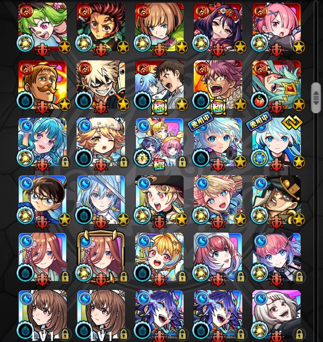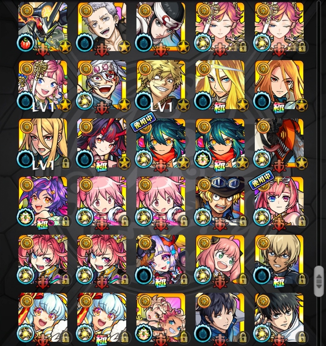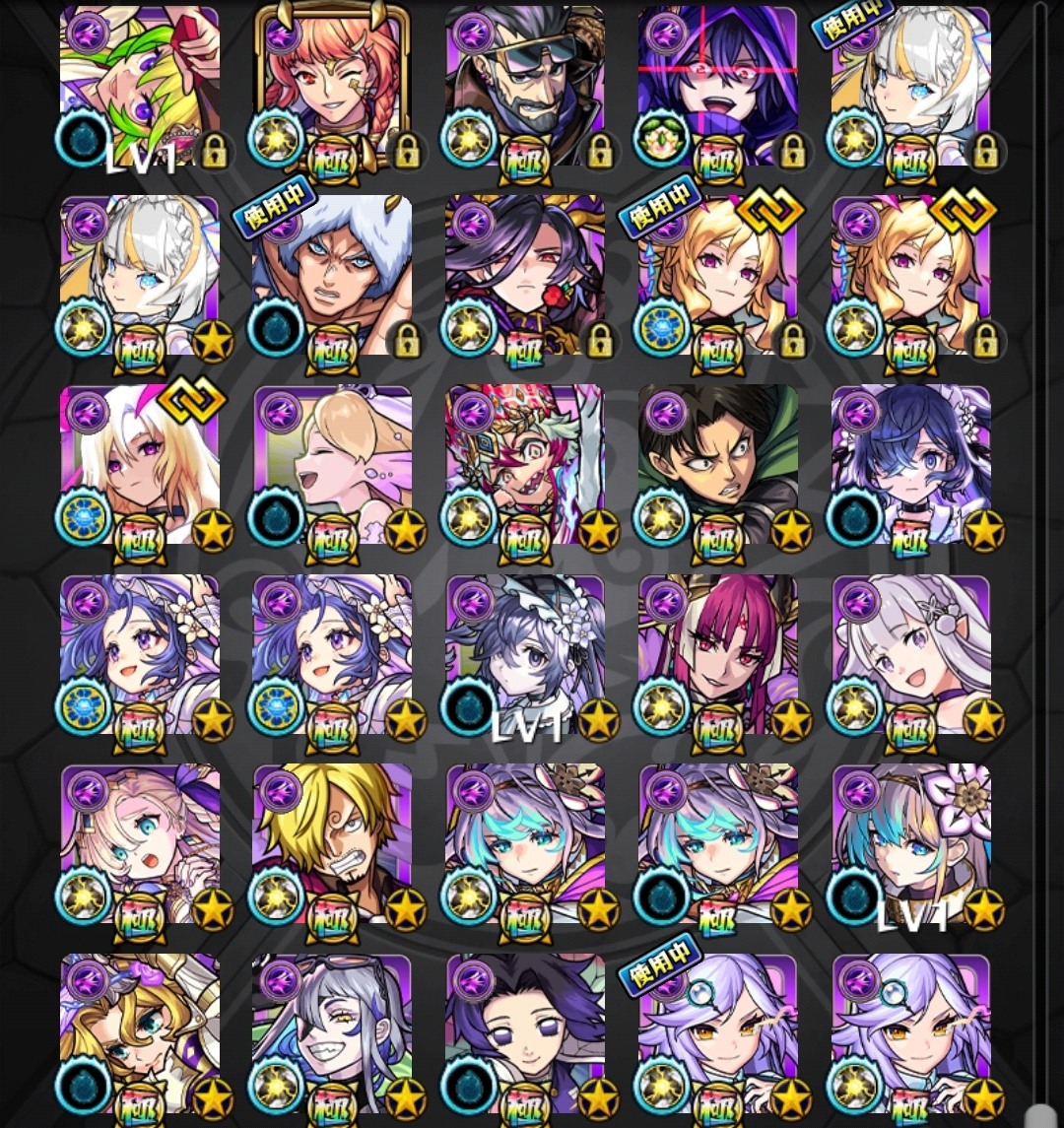 黎絶運極1種・轟絶運極33種・カルマロックスター・アンドロイドダイナー・リンネなど所持