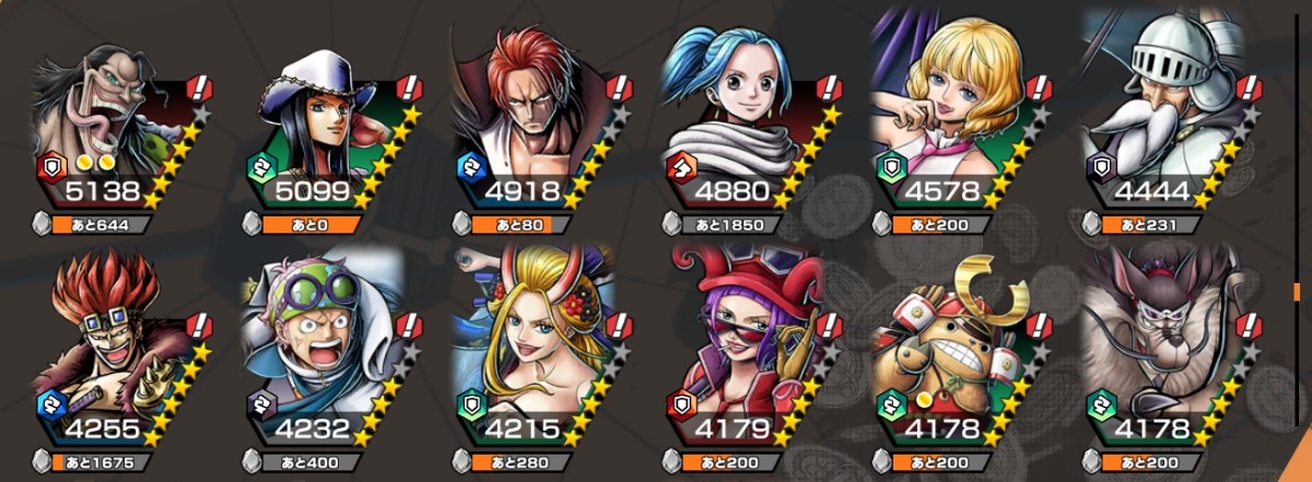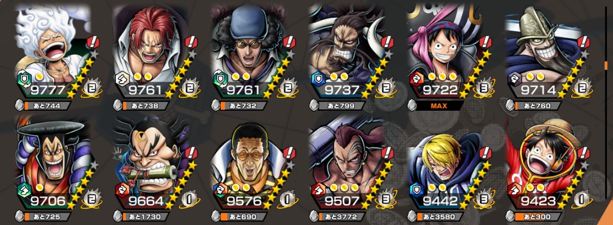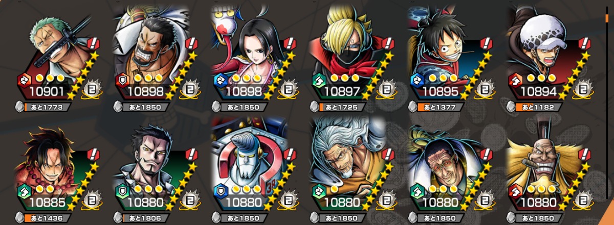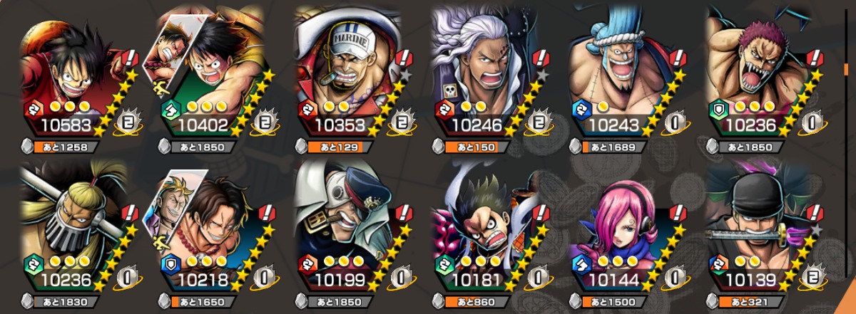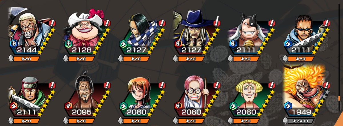 超フェス21体・黒ロジャーLv100・覚醒ルッチLv100・クザン・黄猿など所持