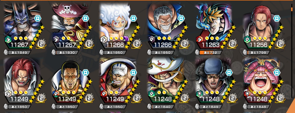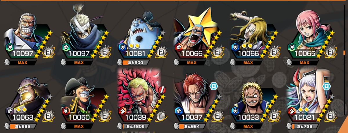 超フェス28体・緑ニカ52マス解放・【新ニカ・黄猿・クザン・S-スネーク】Lv100など所持
