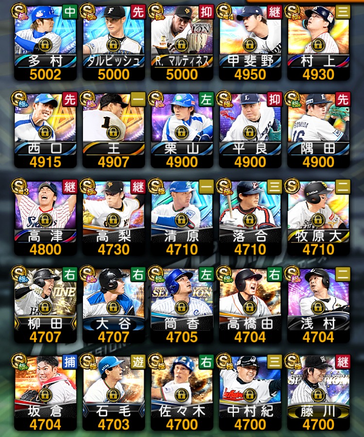 | Sランク極選手所持数 | 60体 |