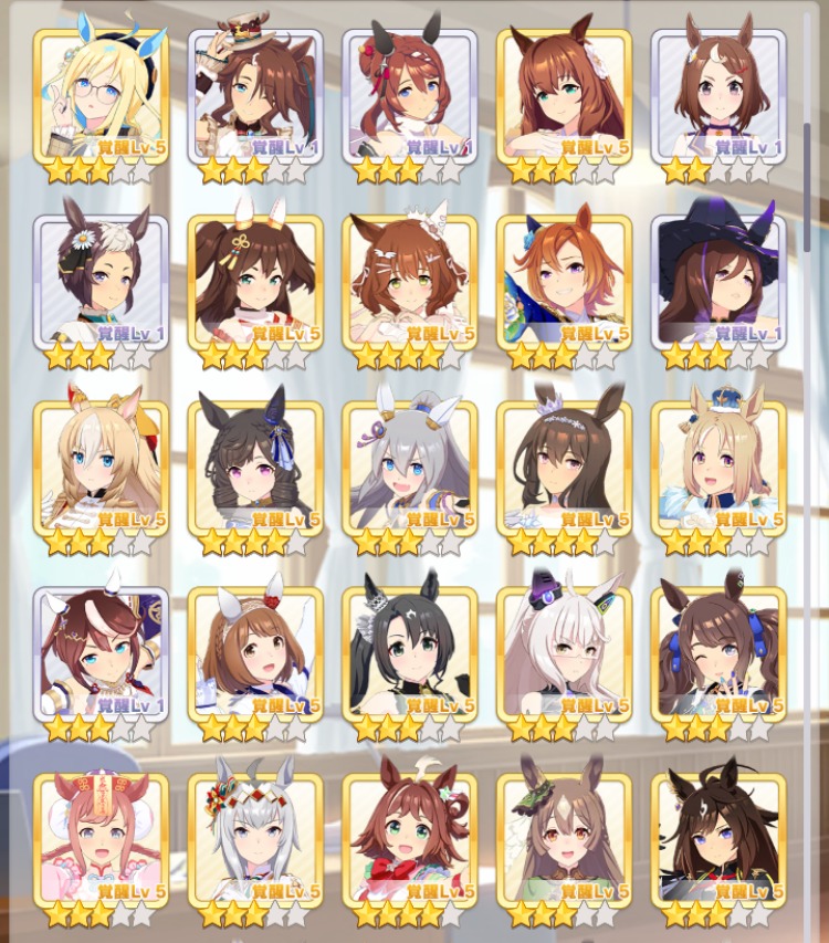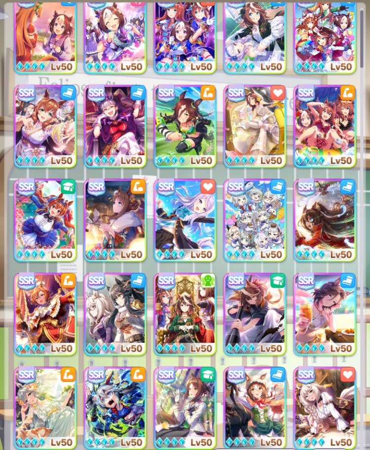 SSR完凸アドマイアグルーヴ・SSR完凸アーモンドアイ・SSR完凸ステイゴールドなど所持